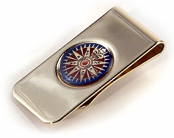 Geldscheinklammer, mit dekorativer Kompassrose, 50 x 25 mm, Oberfläche: Messing lackiert